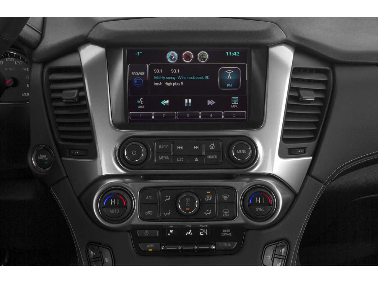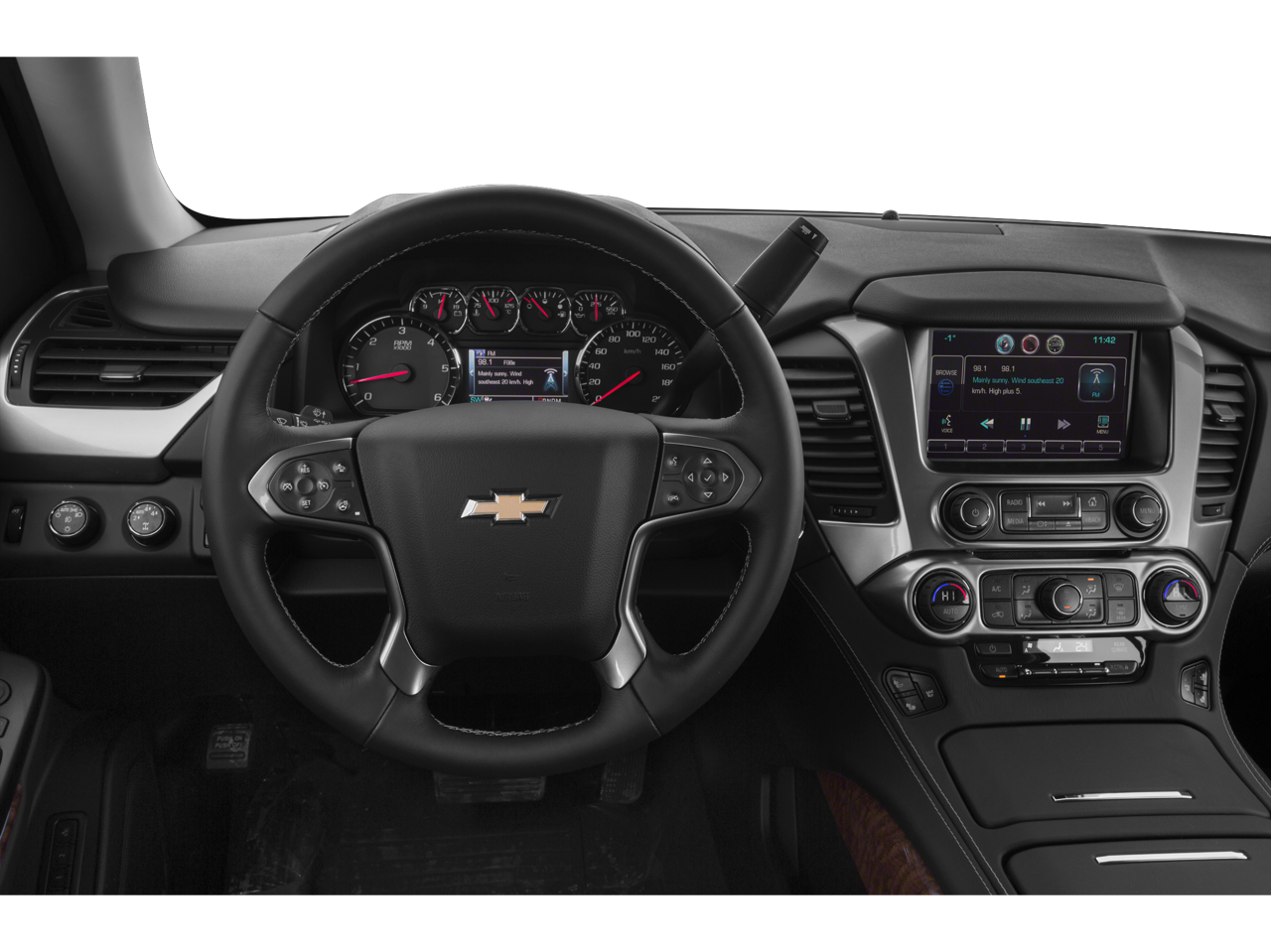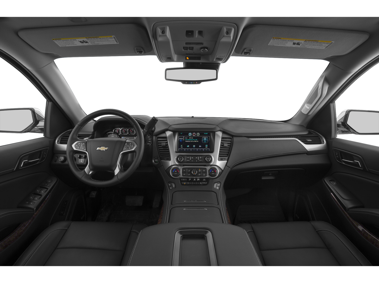 Body Security Content Theft Protection Package (Theft-Deterrent Alarm System, Vehicle Inclination Sensor, and Vehicle Interior Movement Sensor), Magnetic Ride Control Suspension Package, Max Trailering Package (Integrated Trailer Brake Controller), Preferred Equipment Group 1LZ (3rd Row 60/40 Power Fold Split-Bench, 5 12-Volt Auxiliary Power Outlets, Auto-Dimming Inside Rear-View Mirror, Bose Centerpoint Premium 10-Speaker Surround Sound, Driver Inboard & Front Passenger Airbags, Floor Console, Fog Lamps, Forward Collision Alert, Front & Rear Parking Assist, Hands Free Power Liftgate, Heated 2nd Row Seats, Heated Leather Wrapped Steering Wheel, Heavy-Duty Rear Locking Differential, Keyless Start Switch, Lane Departure Warning & Safety Alert Seat, Memory Settings, Passive Entry System, Power Adjustable Pedals, Power Release 2nd Row Bucket Seats, Power Tilt & Telescoping Steering Column, Power-Folding Heated Outside Mirrors, Rear Cross-Traffic Alert, Remote Keyless Entry, Side Blind Zone Alert w/Lane Change Alert, Universal Home Remote, and Wireless Charging), Sun, Entertainment & Destinations Package (Power Sunroof and Rear Seat Blu-Ray/DVD Entertainment System), Cocoa/Dune Leather, 10 Speakers, 3rd row seats: split-bench, 4-Wheel Disc Brakes, ABS brakes, Adaptive suspension, Adjustable pedals, Air Conditioning, Alloy wheels, AM/FM radio: SiriusXM, Auto-dimming door mirrors, Auto-dimming Rear-View mirror, Automatic temperature control, Black Roof Rack Cross Bars, Bluetooth娨 For Phone, Bodyside moldings, Brake assist, Bumpers: body-color, CD player, Compass, Delay-off headlights, Driver door bin, Driver vanity mirror, Dual front impact airbags, Dual front side impact airbags, Electronic Stability Control, Emergency communication system: OnStar Directions & Connections, Exterior Parking Camera Rear, Front anti-roll bar, Front Bucket Seats, Front Center Armrest, Front dual zone A/C, Front fog lights, Front Heated Reclining Bucket Seats, Front reading lights, Front wheel independent suspension, Fully automatic headlights, Garage door transmitter, Heated & Cooled Driver & Front Passenger Seats, Heated door mirrors, Heated front seats, Heated rear seats, Heated steering wheel, High-Intensity Discharge Headlights, Illuminated entry, Low tire pressure warning, Memory seat, Navigation System, Occupant sensing airbag, Outside temperature display, Overhead airbag, Overhead console, Panic alarm, Passenger door bin, Passenger vanity mirror, Pedal memory, Perforated Leather-Appointed Seat Trim, Polished Exhaust Tips, Power door mirrors, Power driver seat, Power Liftgate, Power passenger seat, Power steering, Power windows, Power-Retractable Assist Steps, Premium audio system: Chevrolet MyLink, Radio: Chevrolet MyLink w/Navigation/AM/FM Stereo, Rain sensing wipers, Rear air conditioning, Rear anti-roll bar, Rear reading lights, Rear window defroster, Rear window wiper, Remote keyless entry, Roof rack: rails only, Security system, Single-Slot CD/MP3 Player, SiriusXM Satellite Radio, Speed control, Speed-sensing steering, Split folding rear seat, Spoiler, Steering wheel memory, Steering wheel mounted audio controls, Tachometer, Telescoping steering wheel, Tilt steering wheel, Traction control, Trip computer, Turn signal indicator mirrors, Variably intermittent wipers, Ventilated front seats, Voltmeter, and Wheels: 20" x 9" Polished-Aluminum. Recent Arrival!