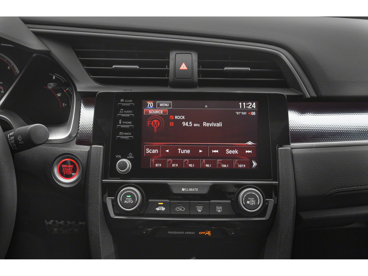 - Radio: 180-Watt AM/FM Audio System -inc: 8 speakers, 7-inch display w/high-resolution electrostatic touch-screen, knob and hard keys for primary controls and customizable feature settings, Bluetooth HandsFreeLink, Bluetooth streaming audio, radio data system (RDS), speed-sensitive volume compensation (SVC), 1.5-amp USB smartphone/audio interface in front, 1.0-amp USB audio interface port in center console, HondaLink, Apple CarPlay integration, Android Auto integration, SMS text message function and illuminated steering wheel-mounted controls