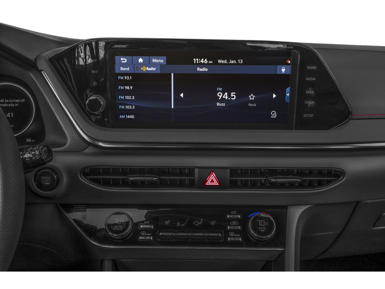 - Radio: AM/FM/MP3/HD/SiriusXM Display Audio -inc: 8" color touchscreen, 6 speakers (2 front door mounted speakers, 2 tweeters and 2 rear speakers), integrated Bluetooth, Blue Link connected car system, Apple CarPlay, Android Auto and USB charge port