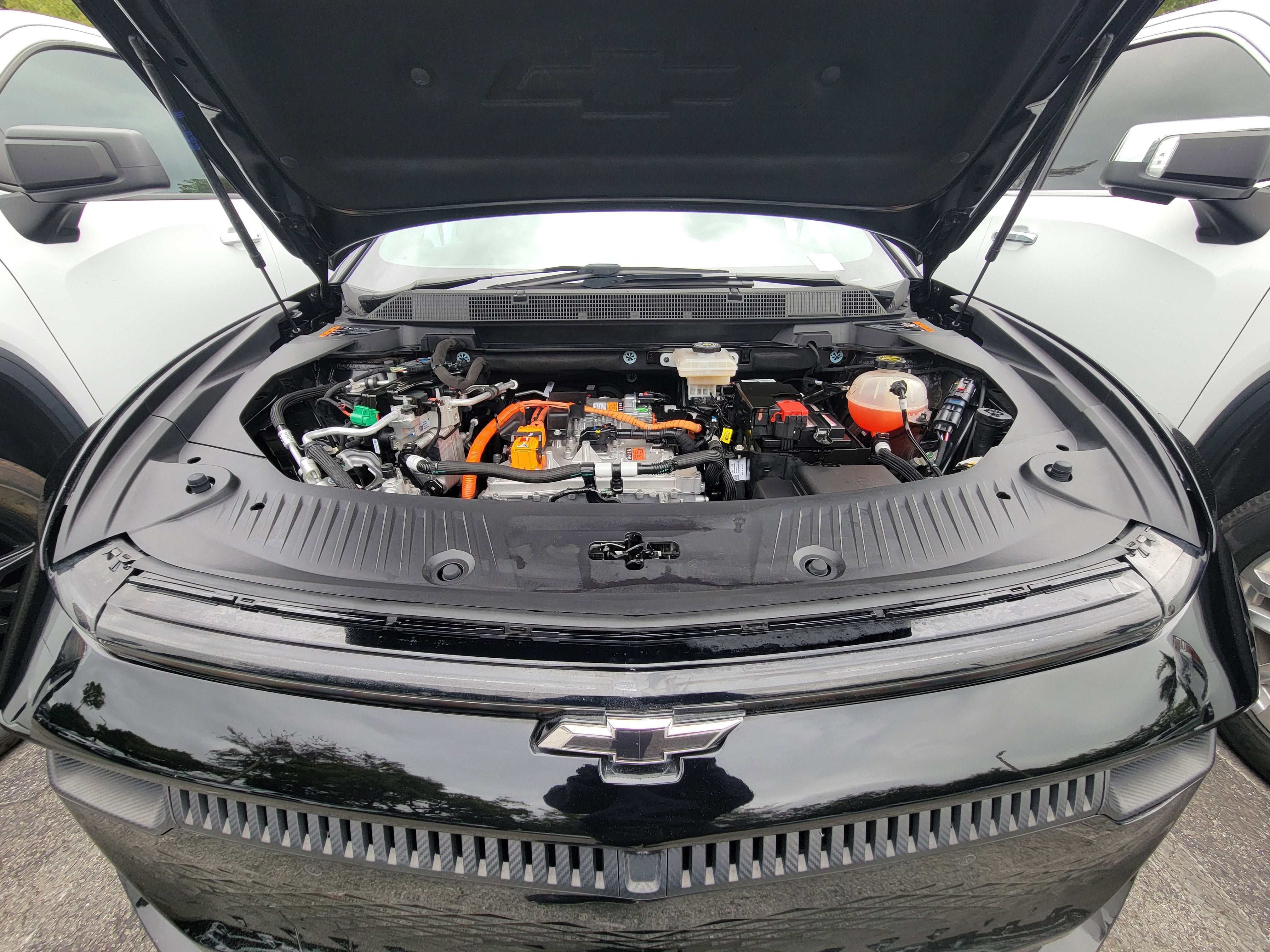 Preferred Equipment Group 0RP, Equinox EV RS, 4D Sport Utility, Electric Drive Unit, 1-Speed Automatic, FWD, Black, Black w/Red Accents w/Evotex Seat Trim, 4-Wheel Disc Brakes, 6 Speakers, 6-Speaker Audio System Feature, 6-Way Manual Front Passenger Seat Adjuster, 8-Way Power Driver Seat Adjuster, ABS brakes, Air Conditioning, Alloy wheels, AM/FM radio: SiriusXM with 360L, Auto High-beam Headlights, Auto-dimming Rear-View mirror, Automatic temperature control, Brake assist, Bumpers: body-color, Compass, Delay-off headlights, Driver 4-Way Power Lumbar Control, Driver door bin, Driver vanity mirror, Dual front impact airbags, Dual front side impact airbags, Electronic Stability Control, Emergency communication system: OnStar and Chevrolet connected services capable, Evotex Seat Trim, Four wheel independent suspension, Front anti-roll bar, Front Bucket Seats, Front Center Armrest, Front reading lights, Fully automatic headlights, Heated door mirrors, Heated Driver & Fr Passenger Seats Cushion & Seatback, Heated front seats, Heated steering wheel, Illuminated entry, Knee airbag, Low tire pressure warning, Navigation system: Google built-in compatibility (select service plan required, terms and limitations apply), Occupant sensing airbag, Outside temperature display, Overhead airbag, Overhead console, Panic alarm, Passenger door bin, Passenger vanity mirror, Power door mirrors, Power driver seat, Power Liftgate, Power steering, Power windows, Radio: 17.7" Diagonal Advanced Color LCD Display, Rear anti-roll bar, Rear reading lights, Rear seat center armrest, Rear window defroster, Rear window wiper, Remote keyless entry, Security system, SiriusXM w/360L, Speed control, Split folding rear seat, Spoiler, Sport steering wheel, Steering wheel mounted audio controls, TBD Axle Ratio, Telescoping steering wheel, Tilt steering wheel, Traction control, Trip computer, Turn signal indicator mirrors, Variably intermittent wipers, and Wheels: 21" Black Painted Aluminum. Recent Arrival! Odometer is 4662 miles below market average! 117/99 City/Highway MPG